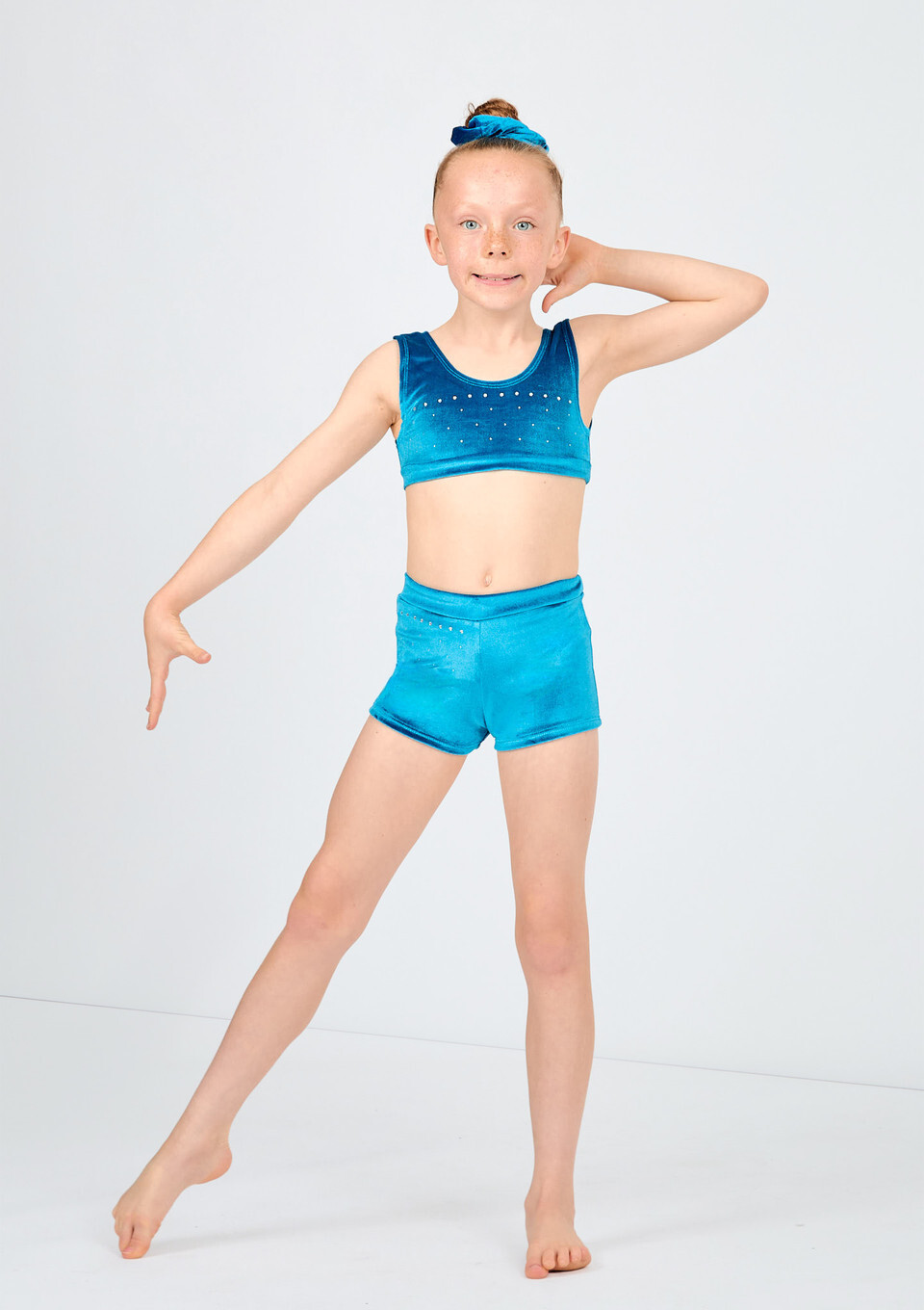 Alegra Girls Glacier Velour Crop Top & Alegra Girls Illume Velour Dance Shorts